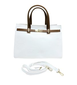 Borsa a mano in pelle dollaro semirigida dalla linea squadrata con rifiniture cuoio - BIANCA