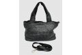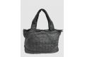 Borsa a spalla con doppio manico in pelle lavata intrecciata su entrambi i lati- NERO