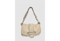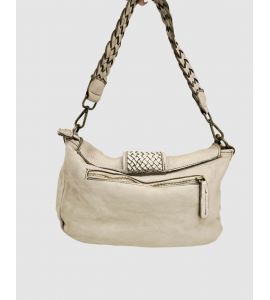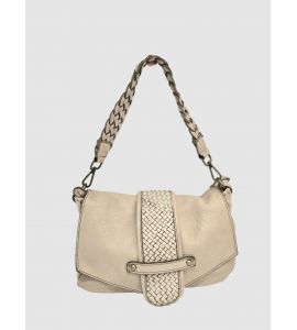 Borsa a spalla in pelle lavata con pattina e riporto intrecciato - BEIGE