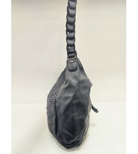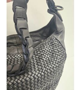 Borsa in pelle lavata intrecciata a mano con manico lungo lavorato - NERO