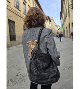 Questa borsa in pelle lavata nera è un capolavoro di artigianato, realizzato con una tecnica di intreccio a mano che conferisce alla borsa un'eleganza e uno stile unici. Il manico lungo lavorato aggiunge un tocco di raffinatezza e praticità, consentendo di indossare la borsa comodamente sulla spalla. La calda tonalità del nero si adatta perfettamente a qualsiasi outfit, dalla casual alla formale, garantendo un look sofisticato in ogni occasione.