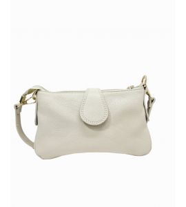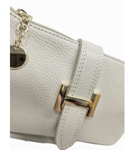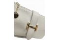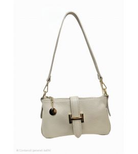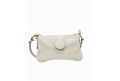 Borsa piatta piccola in pelle dollaro con pattina e accessorio dorato - BEIGE