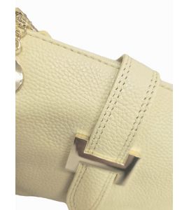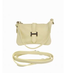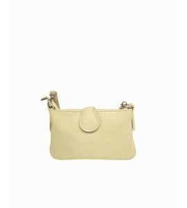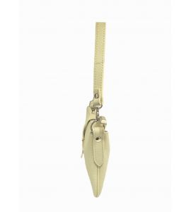 Borsa piatta piccola in pelle dollaro con pattina e accessorio dorato - GIALLO