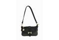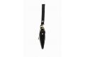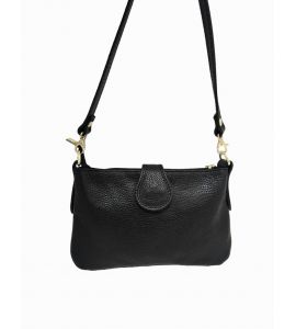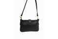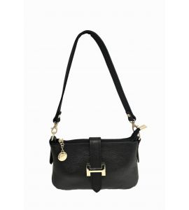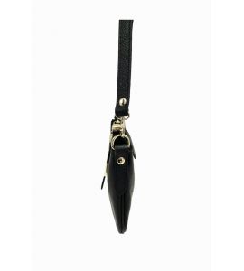 Borsa piatta piccola in pelle dollaro con pattina e accessorio dorato - NERO
