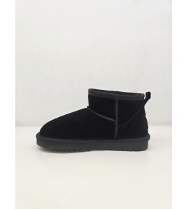 Bottines pour femmes en cuir et daim avec fourrure intérieure de style "hug" - NOIR
