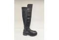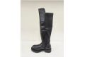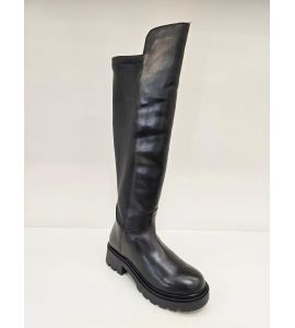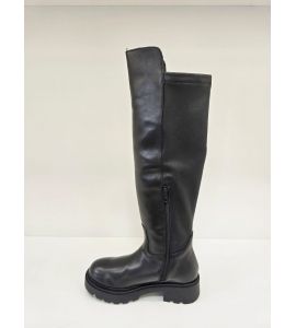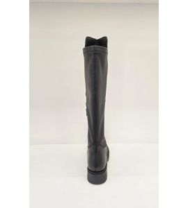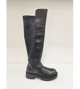 Botte en cuir à jambe haute pour femme avec insert élastiqué - NOIR