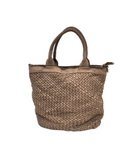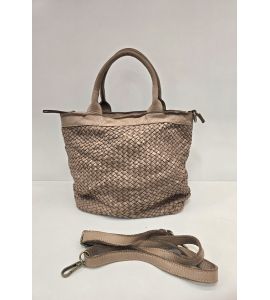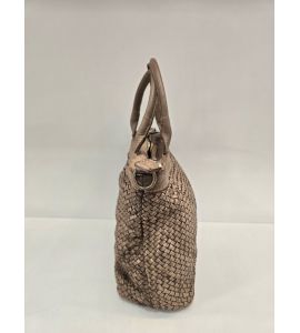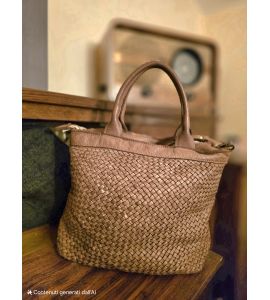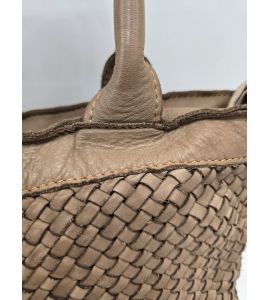 Sac à double poignée en cuir lavé avec tissage fait main des deux côtés - TORTORA