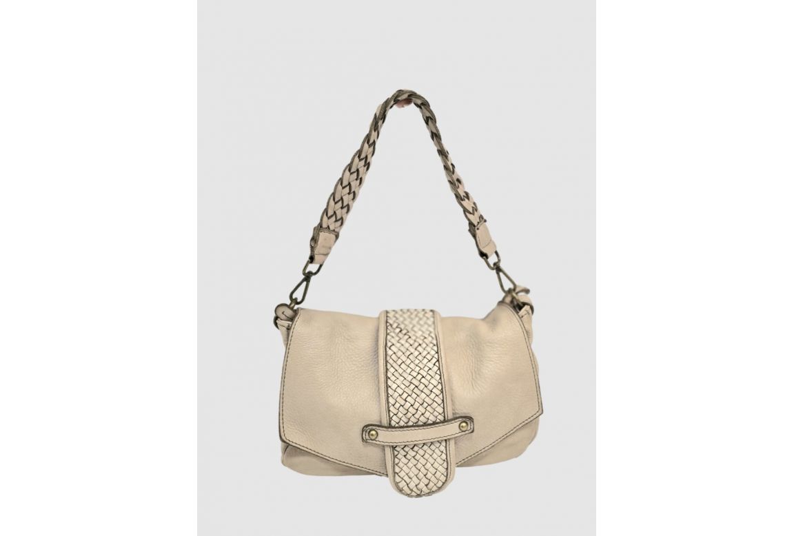 Borsa a spalla in pelle lavata intrecciata che diventa a tracolla- BEIGE