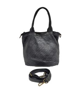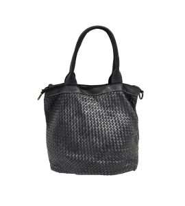 Borsa con doppio manico in pelle lavata con intreccio fatto a mano su entrambi i lati - NERO
