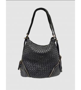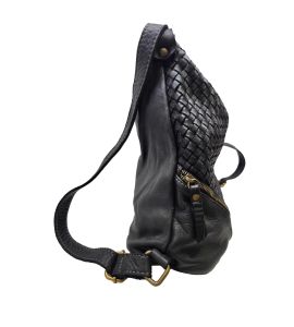 Borsa zaino in pelle lavata con intreccio frontale e tasche - NERO