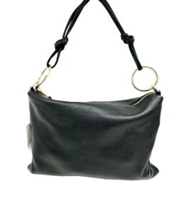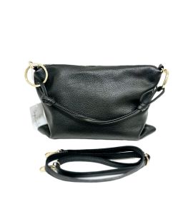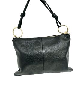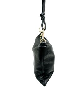 The large flat dollar leather bag with shoulder strap - BLACK offers ample interior space to hold all the essentials you need throughout the day.
