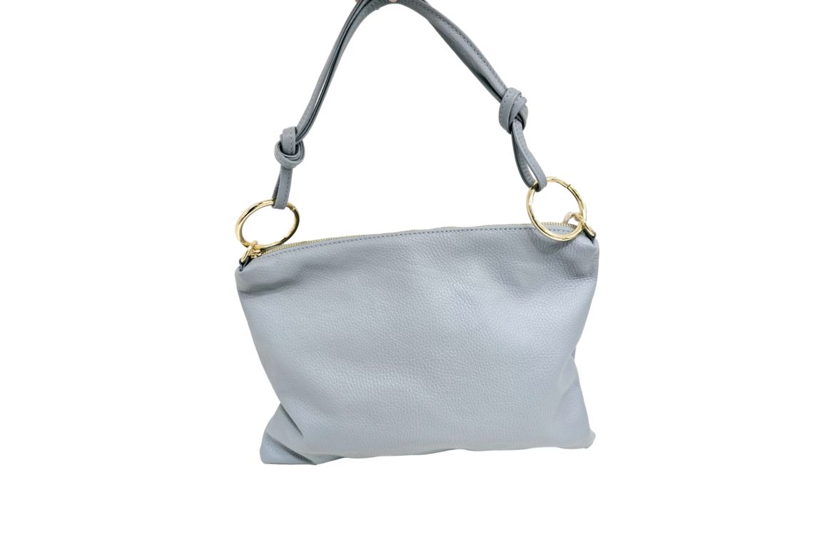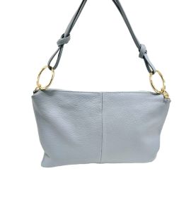 The large flat dollar leather bag with shoulder strap is the perfect accessory to complete your look for any occasion. The sleek, minimalist design easily complements any outfit, from classic elegance to casual looks. Thanks to its spacious size, you can carry everything you need throughout the day without sacrificing style. The adjustable shoulder strap allows you to wear it comfortably and conveniently, while the light blue colour adds a fresh and original touch to your look.