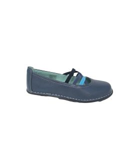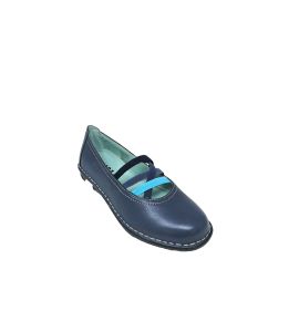 Ballerina in pelle con elastici colorati e cuciture a contrasto - BLU