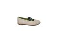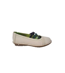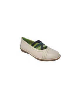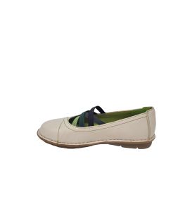 Ballerina in pelle con elastici colorati e cuciture a contrasto- PANNA