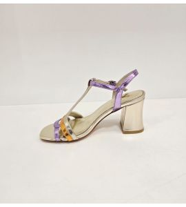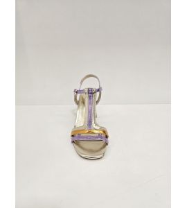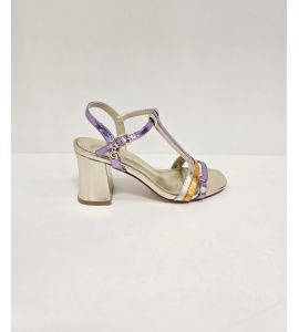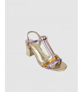 Sandalo donna in ecopelle laminato con colori a contrasto - ORO
